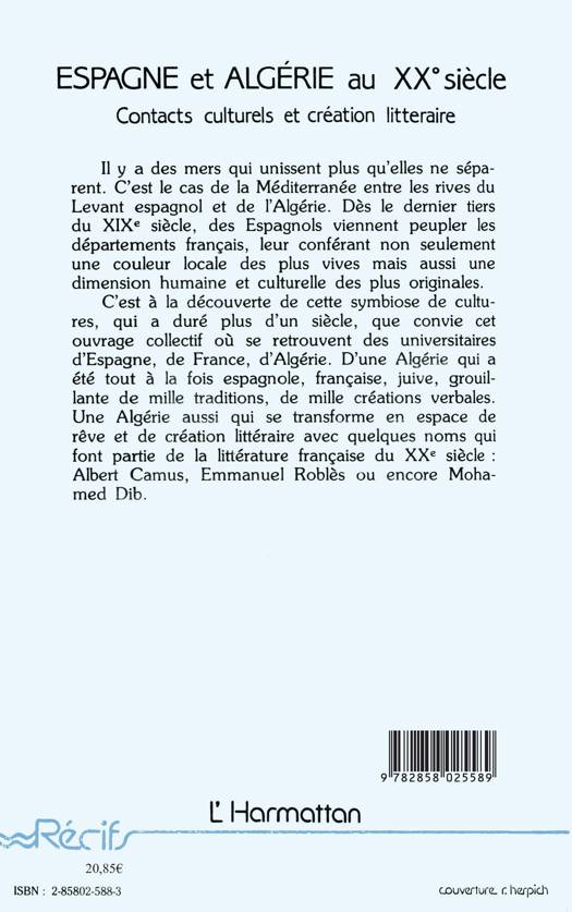 C'est à la découverte d'une symbiose de cultures, qui a duré plus d'un siècle, que convie cet ouvrage collectif où se retrouvent des universitaires d'Espagne, de France, d'Algérie.