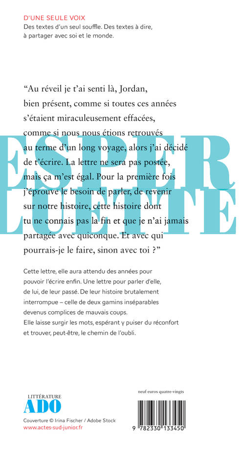 Cette lettre, elle aura attendu des années pour pouvoir l'écrire enfin. Une lettre pour parler d'elle, de lui, de leur passé. De leur histoire brutalement interrompue - celle de deux gamins inséparables devenus complices de mauvais coups. Elle laisse surgir les mots, espérant y puiser du réconfort et trouver, peut-être, le chemin de l'oubli.