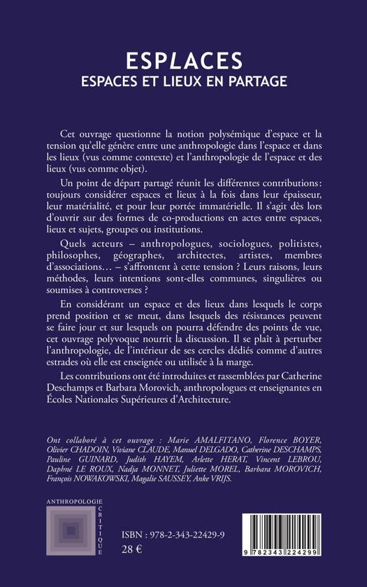 Cet ouvrage questionne la notion polysémique d'espace et la tension qu'elle génère entre une anthropologie dans l'espace et dans les lieux (vus comme contexte) et l'anthropologie de l'espace et des lieux (vus comme objet). Un point de départ partagé réunit les différentes contributions: toujours considérer espaces et lieux à la fois dans leur épaisseur, leur matérialité, et pour leur portée immatérielle. Il s'agit dès lors d'ouvrir sur des formes de co-productions en actes entre espaces, lieux et sujets, groupes ou institutions. Quels acteurs, anthropologues, sociologues, politistes, philosophes, géographes, architectes, artistes, membres d'associations, s'affrontent à cette tension ? Leurs raisons, leurs méthodes, leurs intentions sont-elles communes, singulières ou soumises à controverses ?
