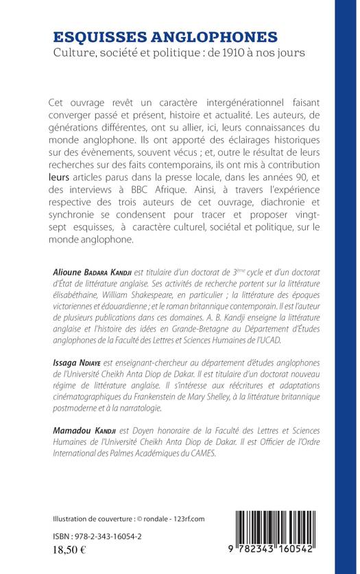 Les auteurs, de générations différentes, ont su allier leurs connaissances du monde anglophone. Ils ont apporté des éclairages historiques sur des évènements qu'ils ont souvent vécus ; et, outre le résultat de leurs recherches sur des faits contemporains, ils ont mis à contribution leurs articles parus dans la presse locale dans les années 90 ainsi que des interviews à BBC Afrique. Ainsi, à travers l'expérience respective des trois auteurs de cet ouvrage, diachronie et synchronie se condensent pour tracer et proposer vingt-sept esquisses, à caractère culturel, sociétal et politique, sur le monde anglophone.