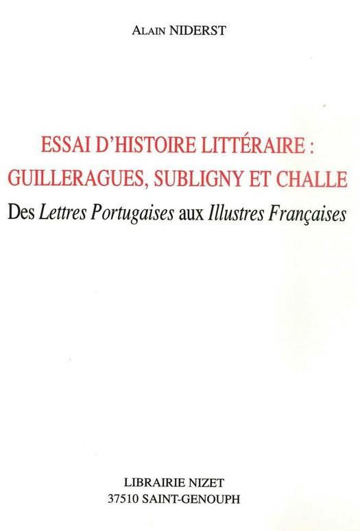 Essai d'histoire littéraire: Guillerargues, Subligny et Challe