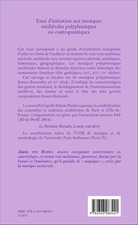 Cet essai correspond à un guide d'orientation susceptible d'aider les choix de l'auditeur en tentant de créer une ambiance musicale médiévale avec certains repères culturels, artistiques, historiques, géographiques. Cet ouvrage se focalise sur les musiques polyphoniques franco-flamandes du XVe siècle. Il indique les caractéristiques des genres musicaux, le développement de l'instrumentarium médiéval, des danses, et aussi la liste des plus grands compositeurs franco-flamands.