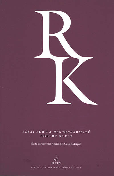 Selon une logique aussi inédite que déroutante, l'auteur, en liant étroitement histoire de l'art et phénoménologie, convoque tour à tour théorie du droit, herméneutique et psychanalyse pour affirmer que la responsabilité se fonde dans le cogito, face au tribunal de la conscience. S'ils ne sont pas explicitement mentionnés, on devine les spectres de la Seconde Guerre mondiale et de la Shoah dans ce texte, écrit vers 1960 et précédant de peu les grands procès des responsables nazis. Klein, ce « "juste", à qui le repos de la bonne conscience était spécialement interdit » , comme le définit son directeur de thèse et collaborateur André Chastel, était jusqu'ici surtout connu pour ses textes d'histoire de l'art. Cette étude révèle la profondeur de sa pensée philosophique et permet de comprendre la continuité qu'il a toujours ménagée entre éthique et esthétique.