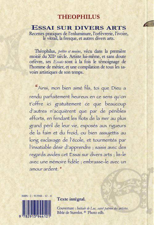 Théophilus, bénédictin allemand de la 1re moitié du XIIe siècle, artiste et orfèvre, donne son témoignage d'homme de métier, et une compilation des savoirs artistiques de son temps.