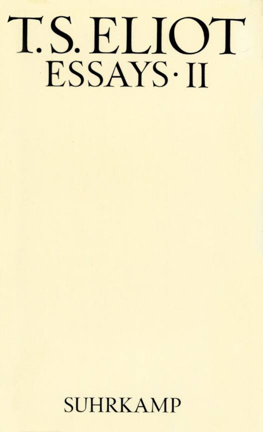 Die drei Stimmen der Dichtung. (Deutsch von Helene Ritzerfeld). Vers und Drama. (Deutsch von H.H. Schaeder). Dante. (Deutsch von H.H. Schaeder). Christopher Marlowe. (Deutsch von Hans Hennecke). Hamlet. (Deutsch von H.H. Schaeder). Shakespeares Verskunst. (Deutsch von Gerhard Hensel). Ben Jonson. (Deutsch von Ursula Clemen). Milton. (Deutsch von H.H. Schaeder). Johnson als Kritiker und Dichter. (Deutsch von Ellen Sckommodau). William Blake. (Deutsch von Hans Hennecke). Shelley und Keats. (Deutsch von Hans Hennecke). Baudelaire. (Deutsch von H.H. Schaeder). Yeats. (Deutsch von Hans Hennecke). Von Poe zu Valéry. (Deutsch von H.H. Schaeder). Ezra Pound: Seine Metrik und Dichtung. (Deutsch von Ulrich Keller). Ulysses, Ordnung und Mythos. (Deutsch von Armin P. und Mechthild Frank). Goethe der Weise. (Deutsch von Ursula Clemen).