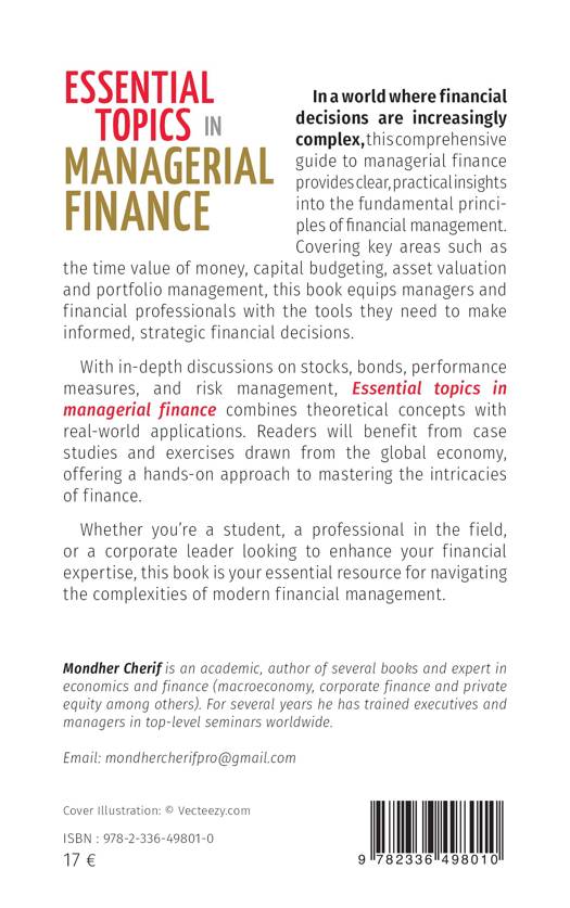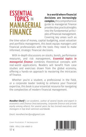In a world where financial decisions are increasingly complex, this comprehensive guide to managerial finance provides clear, practical insights into the fundamental principles of financial management. Covering key areas such as the time value of money, capital budgeting, asset valuation and portfolio management, this book equips managers and financial professionals with the tools they need to make informed, strategic financial decisions. With in-depth discussions on stocks, bonds, performance measures, and risk management, Essential topics in managerial finance combines theoretical concepts with real-world applications. Readers will benefit from case studies and exercises drawn from the global economy, offering a hands-on approach to mastering the intricacies of finance. Whether you’re a student, a professional in the field, or a corporate leader looking to enhance your financial expertise, this book is your essential resource for navigating the complexities of modern financial management.