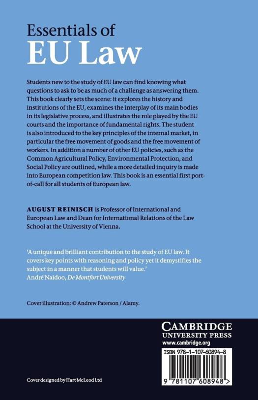 Students new to the study of EU law can find knowing what questions to ask to be as much of a challenge as answering them. This book clearly sets the scene: it explores the history and institutions of the EU, examines the interplay of its main bodies in its legislative process and illustrates the role played by the EU Courts and the importance of fundamental rights. The student is also introduced to the key principles of the internal market, in particular the free movement of goods and the free movement of workers. In addition a number of other EU policies, such as the Common Agricultural Policy, Environmental Protection and Social Policy are outlined, while a more detailed inquiry is made into European competition law. This book is an essential first port-of-call for all students of European law.