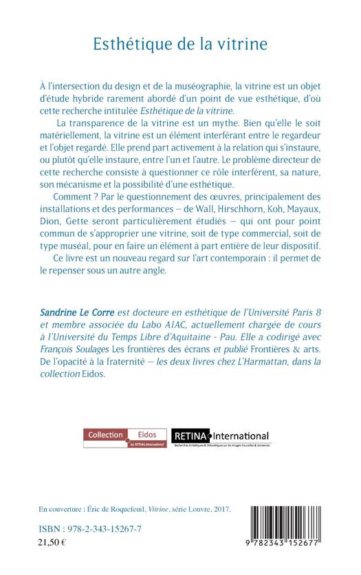 À l'intersection du design et de la muséographie, la vitrine est un objet d'étude hybride rarement abordé d'un point de vue esthétique. Bien qu'elle soit transparente matériellement, la vitrine est un élément interférant entre le regardeur et l'objet regardé. Elle prend part activement à la relation qui s'instaure, ou plutôt qu'elle instaure, entre l'un et l'autre. Le problème directeur de cette recherche consiste à questionner ce rôle interférent, sa nature, son mécanisme et la possibilité d'une esthétique.
