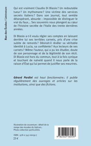Qui est vraiment Claudio Di Blasio ? Un redoutable tueur ? Un mythomane ? Une victime des services secrets italiens ? Dans son journal, tout semble désespérant, absurde : impossible de distinguer le vrai du faux... Ses souvenirs nous plongent au coeur de l'histoire secrète de l'Italie des trente dernières années.