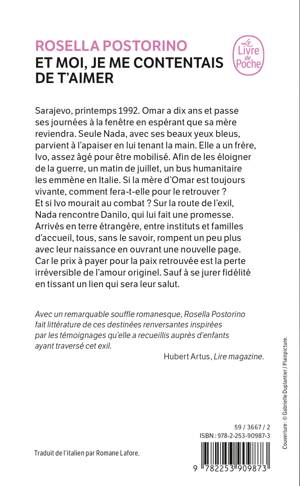 Sarajevo, printemps 1992. Omar a dix ans et passe ses journées à la fenêtre en espérant que sa mère revienne. Seule Nada, avec ses beaux yeux bleus, parvient à l’apaiser en lui tenant la main. Elle a un frère, Ivo, assez âgé pour être mobilisé. Pour les éloigner de la guerre, un matin de juillet, un bus humanitaire les emmène en Italie. Si la mère d’Omar est toujours vivante, comment fera-t-elle pour le retrouver ? Et si Ivo mourait au combat ? Sur la route de l’exil, Nada rencontre Danilo, qui lui fait une promesse. Arrivés en terre étrangère, entre instituts et familles d’accueil, chacun, sans le savoir, rompt un peu plus le lien avec sa naissance en ouvrant une nouvelle page. Car le prix à payer pour la paix retrouvée est la perte irréversible de l’amour originel. Sauf à se jurer fidélité en tissant un lien qui sera leur salut.