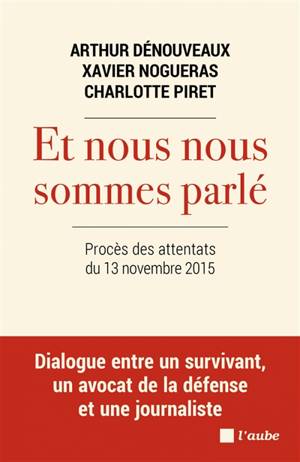 Charlotte Piret, journaliste, se demande comment aborder le procès des attentats du 13 novembre 2015, quand elle a l'idée de proposer à Xavier Nogueras, avocat de la défense, et à Arthur Dénouveaux, partie civile, survivant du Bataclan, de se joindre à elle. Le projet?: échanger leurs impressions à vif tout au long de l'audience via des notes vocales. S'ensuivent alors presque dix mois d'échanges chargés d'émotions et de questionnements qui en disent beaucoup sur l'importance de ce procès, pour chacun d'entre eux évidemment, pour ce qu'ils sont et font, et, au-delà, pour l'ensemble de la société. C'est parce qu'ils vont bientôt constater que cet étrange journal de bord permet d'éclairer sous un jour nouveau les enjeux politiques et humains de ce moment d'histoire contemporaine que la décision est prise de le partager publiquement. C'est ce livre que vous avez aujourd'hui entre les mains.Arthur Dénouveaux est survivant du Bataclan et président de l'association de victimes du 13 novembre 2015 Life for Paris.Xavier Nogueras est avocat au barreau de Paris.Charlotte Piret est journaliste à France Inter.