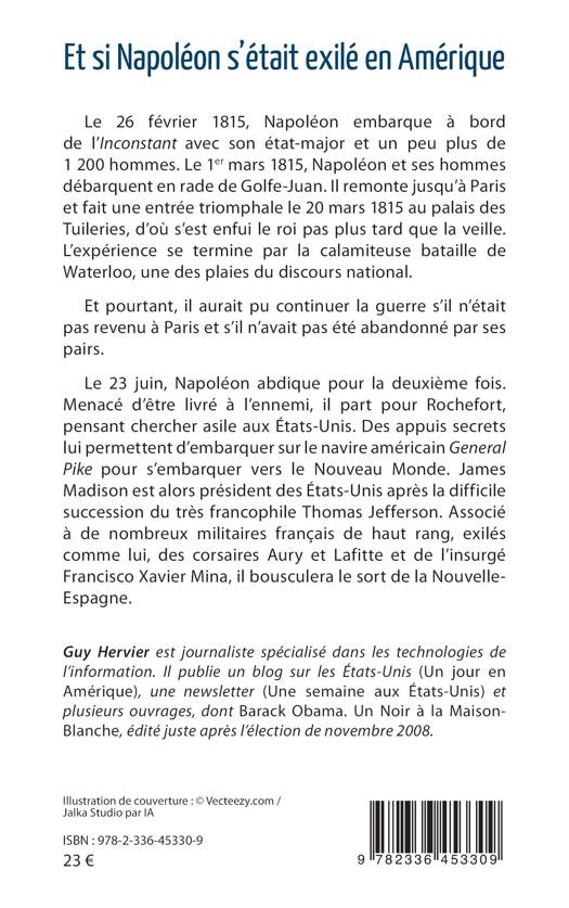 Le 26 février 1815, Napoléon embarque à bord de l'Inconstant avec son état-major et un peu plus de 1 200 hommes. Le 1er mars 1815, Napoléon et ses hommes débarquent en rade de Golfe-Juan. Il remonte jusqu'à Paris et fait une entrée triomphale le 20 mars 1815 au palais des Tuileries, d'où s'est enfui le roi pas plus tard que la veille. L'expérience se termine par la calamiteuse bataille de Waterloo, une des plaies du discours national. Et pourtant, il aurait pu continuer la guerre s'il n'était pas revenu à Paris et s'il n'avait pas été abandonné par ses pairs. Le 23 juin, Napoléon abdique pour la deuxième fois. Menacé d'être livré à l'ennemi, il part pour Rochefort, pensant chercher asile aux États-Unis. Des appuis secrets lui permettent d'embarquer sur le navire américain General Pike pour s'embarquer vers le Nouveau Monde. James Madison est alors président des États-Unis après la difficile succession du très francophile Thomas Jefferson. Associé à de nombreux militaires français de haut rang, exilés comme lui, des corsaires Aury et Lafitte et de l'insurgé Francisco Xavier Mina, il bousculera le sort de la Nouvelle-Espagne.