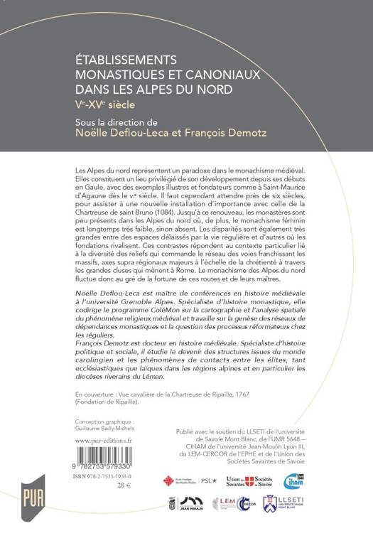 Les Alpes du nord représentent un paradoxe dans le monachisme médiéval. Elles constituent un lieu privilégié de son développement depuis ses débuts en Gaule, avec des exemples illustres et fondateurs comme à Saint-Maurice d’Agaune dès le VIe siècle. Il faut cependant attendre près de six siècles, pour assister à une nouvelle installation d’importance avec celle de la Chartreuse de saint Bruno (1084). Jusqu’à ce renouveau, les monastères sont peu présents dans les Alpes du nord où, de plus, le monachisme féminin y est longtemps très faible, sinon absent. Les disparités sont également très grandes entre des espaces délaissés par la vie régulière et d’autres où les fondations rivalisent. Ces contrastes répondent au contexte particulier lié à la diversité des reliefs qui commande le réseau des voies franchissant les massifs, axes supra régionaux majeurs à l’échelle de la chrétienté à travers les grandes cluses qui mènent à Rome. Le monachisme des Alpes du nord fluctue donc au gré de la fortune de ces routes et de leurs maîtres.