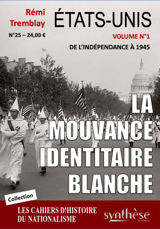 Ce livre, premier d'une série de 3 volumes, relate l'histoire des différents courant identitaires blancs qui ont traversé l'histoire des Etats-Unis depuis leur création. Il analyse ce phénomène de manière factuelle sans tomber dans les clichés coutumiers et confortables du "politiquement correct". Ecrit par Rémi Tremblay, journaliste québécois, ce nouvel ouvrage de la collection des Cahier d'Histoire du nationalisme étudie de manière approfondie les idées et les combats menés par chaque mouvement ainsi que les personnalités des principaux dirigeants de ceux-ci. Une somme indispensable pour ceux qui veulent mieux connaître et comprendre le nationalisme américain.