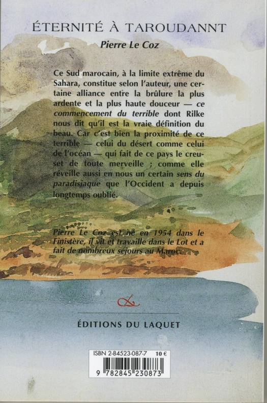 Ce Sud marocain, à la limite extrême du Sahara, constitue selon l'auteur, une certaine alliance entre la brûlure la plus ardente et la plus haute douceur - ce commencement du terrible dont Rilke nous dit qu'il est la vraie définition du beau. Car c'est bien la proximité de ce terrible - celui du désert comme celui de l'océan - qui fait de ce pays le creuset de toute merveille ; comme elle réveille aussi en nous un certain sens du paradisiaque que l'Occident a depuis longtemps oublié.