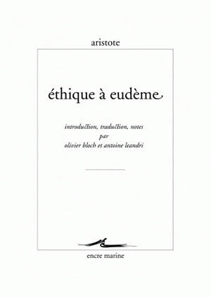 Olivier Bloch et Antoine Leandri proposent ici une nouvelle traduction de l'Ethiquea Eudeme d'Aristote, qu'ils ont effectuee d'apres la derniere edition critique de l'ouvrage, celle de Richard Walzer et Jean Mingay (Oxford Classical Texts, 1991), non sans s'en ecarter lorsque cela leur a paru necessaire, comme ils s'en expliquent dans les notes. Il est question ici de choses aussi bizarres et desuetes que le bonheur, le courage, ou l'amitie, et par raccroc le plaisir, l'intelligence, la sante, la justice, la politique, le divin, etc. L'Introduction precise la nature de l'oeuvre, et les problemes qu'elle pose, par son titre, par ses rapports avec l'autre Ethique aristotelicienne, la plus notoire, l'Ethique a Nicomaque, du point de vue de leur ton, de leur contenu, de leur structure (les deux ouvrages comportent trois livres communs, lesquels, comme c'est la regle editoriale, ne sont pas traduits ici), de leur difference et de l'interpretation qu'il faut en donner (question, en particulier, de l'evolution pretee a la pensee d'Aristote par nombre de commentateurs). Elle se termine sur un apercu concernant l'etablissement du texte.