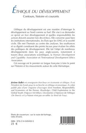 L’éthique du développement est une manière d’interroger le développement au Nord comme au Sud. Elle vise à se demander ce qu’est un bon développement et quelles responsabilités les acteurs doivent assumer lors des échecs. Elle concerne aussi bien les institutions internationales, les États que les ONG et la société civile. Elle met l’humain au centre des analyses. Ses souffrances et sa dignité constituent des points focaux pour évaluer les effets des politiques de développement. Elle fait l’objet de nombreux développements dans les pays anglo-saxons, notamment à travers deux associations scientifiques, la Human Development and Capability Association et l’International Development Ethics Association. Cet ouvrage est le premier en langue française à faire le point sur l’histoire et les mouvements autour de cette thématique.