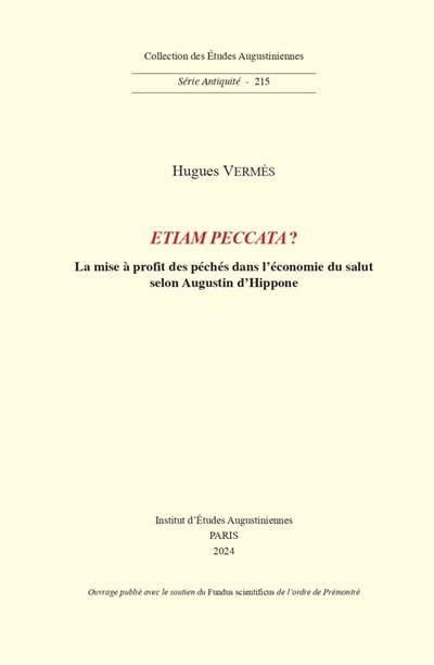 « Etiam peccata – Saint Augustin » : cette épigraphe au Soulier de Satin de Paul Claudel a provoqué un débat sur l’attribution à l’évêque d’Hippone de cette expression devenue proverbiale et comprise comme une glose de Rm 8, 28 : « Tout concourt au bien de ceux qui aiment Dieu » … même les péchés (etiam peccata). Après avoir dans un premier temps confirmé que, si Augustin n’utilise guère cette expression en ce sens, il développe fréquemment l’idée d’une utilisation divine des péchés, la présente recherche propose une analyse approfondie de la conception augustinienne de mise à profit des péchés : en revenant d’abord sur les notions de péché, de peine du péché et de permission du péché, puis en distinguant les modalités de la mise à profit du péché, à partir de l’expérience augustinienne, de la typologie développée en De continentia 15 et de l’exégèse de grandes figures bibliques de pécheurs – Adam, l’apôtre Pierre reniant et pleurant son reniement, les patriarches dont les péchés sont rapportés par les Saintes Écritures. Visant l’humilité, la mise à profit des péchés ainsi relevée trouve son exemplum dans la mort et la résurrection du Christ, preuve suprême que Dieu peut réaliser un bien même à partir du mal du péché.