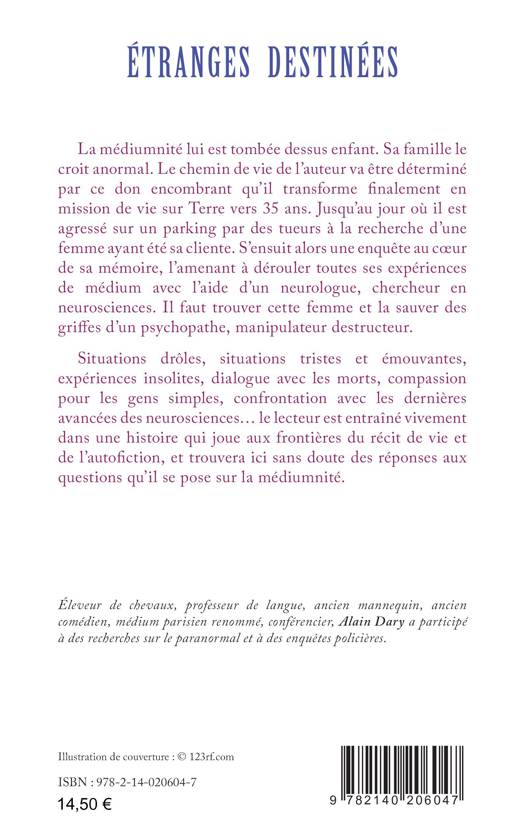 La médiumnité lui est tombée dessus enfant. Sa famille le croit anormal. Le chemin de vie de l’auteur va être déterminé par ce don encombrant qu’il transforme finalement en mission de vie sur Terre vers 35 ans. Jusqu’au jour où il est agressé sur un parking par des tueurs à la recherche d’une femme ayant été sa cliente. S’ensuit alors une enquête au coeur de sa mémoire, l’amenant à dérouler toutes ses expériences de médium avec l’aide d’un neurologue, chercheur en neurosciences. Il faut trouver cette femme et la sauver des griffes d’un psychopathe, manipulateur destructeur. Le lecteur est entraîné vivement dans une histoire qui joue aux frontières du récit de vie et de l’autofiction, et trouvera ici sans doute des réponses aux questions qu’il se pose sur la médiumnité.