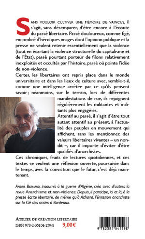 Sans vouloir cultiver une mémoire de vaincus, il s’agit, sans désemparer, d’être encore à l’écoute du passé libertaire. Passé douloureux, comme figé, encombré d’héroïques images dont l’opinion publique et la presse ne veulent retenir essentiellement que la violence (tout en écartant la violence structurelle du capitalisme et de l’État), passé pourtant porteur de filons relativement inexploités et occultés par l’histoire, passé où pointe l’idée de non-violence.