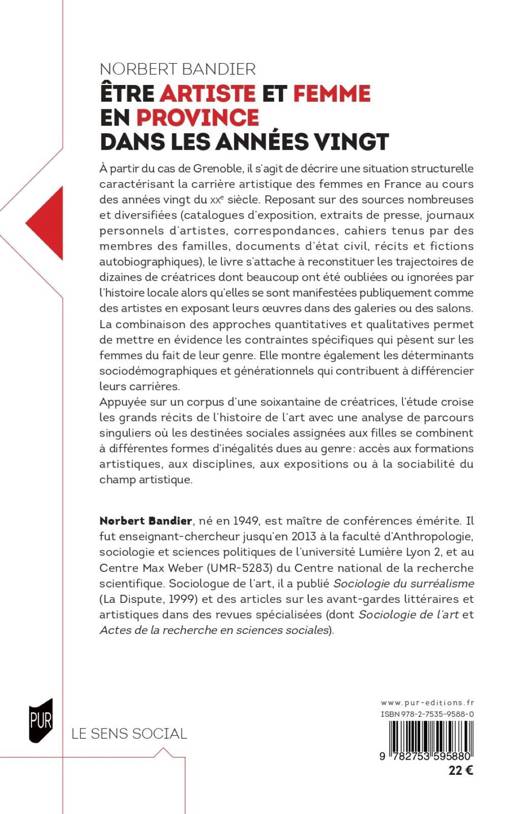 À partir du cas de Grenoble, il s’agit de décrire une situation structurelle caractérisant la carrière artistique des femmes en France au cours des années vingt du XXe siècle. Reposant sur des sources nombreuses et diversifiées (catalogues d’exposition, extraits de presse, journaux personnels d’artistes, correspondances, cahiers tenus par des membres des familles, documents d’état civil, récits et fictions autobiographiques), le livre s’attache à reconstituer les trajectoires de dizaines de créatrices dont beaucoup ont été oubliées ou ignorées par l’histoire locale alors qu’elles se sont manifestées publiquement comme des artistes en exposant leurs oeuvres dans des galeries ou des salons. La combinaison des approches quantitatives et qualitatives permet de mettre en évidence les contraintes spécifiques qui pèsent sur les femmes du fait de leur genre. Elle montre également les déterminants sociodémographiques et générationnels qui contribuent à différencier leurs carrières. Appuyée sur un corpus d’une soixantaine de créatrices, l’étude croise les grands récits de l’histoire de l’art avec une analyse de parcours singuliers où les destinées sociales assignées aux filles se combinent à différentes formes d’inégalités dues au genre : accès aux formations artistiques, aux disciplines, aux expositions ou à la sociabilité du champ artistique.