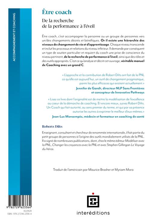 Le coaching a dépassé le cadre du coaching professionnel pour atteindre celui de coaching de vie. Il touche maintenant tous les leviers de l'épanouissement humain : comportements, ressources, croyances, valeurs, identité et même spiritualité. Ce Coaching avec un grand C englobe des fonctions multiples selon le niveau d'accompagnement demandé : de la simple aide ponctuelle à la découverte du sens de sa vie. Robert Dilts, dont l'autorité en matière de PNL et de guidance est reconnue internationalement, fournit dans cet ouvrage les clés et les outils d'un coaching exigeant et humaniste. Il permet au coach de réfléchir sur la profondeur de sa mission et d'identifier les compétences et les outils nécessaires pour la mener à bien.