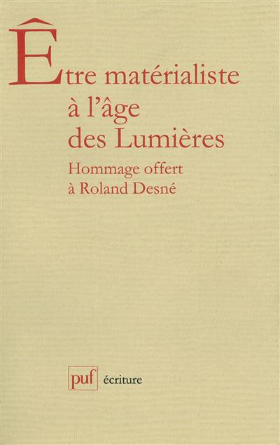 Etre matérialiste ? Ce recueil de 21 études consacrées à 14 écrivains et 1 peintre, est autant une interrogation qu'un constat, une tentative de cerner de plus près l'un des fondements de la pensée des Lumières. Diderot est en première ligne ainsi que des auteurs attendus : Helvétius, La Mettrie, Sade, d'aures moins connus, Casanova, d'autres peu étudiés, Boureau-Deslandes ou le Hongrois Gyorgy Bessenyei.