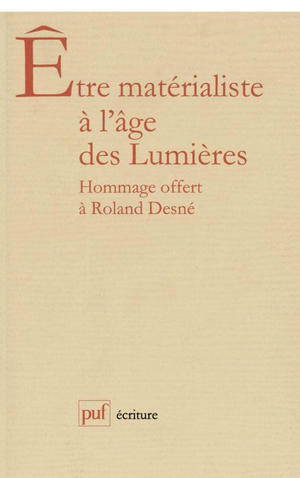 Etre matérialiste ? Ce recueil de 21 études consacrées à 14 écrivains et 1 peintre, est autant une interrogation qu'un constat, une tentative de cerner de plus près l'un des fondements de la pensée des Lumières. Diderot est en première ligne ainsi que des auteurs attendus : Helvétius, La Mettrie, Sade, d'aures moins connus, Casanova, d'autres peu étudiés, Boureau-Deslandes ou le Hongrois Gyorgy Bessenyei.