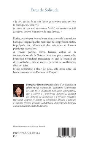 À travers poèmes libres, haïkus, wakas où la contemplation de la Nature tient une place essentielle, Françoise Sérandour transcende et unit le chemin de deux solitudes – fille et mère – parsemé de souffrances, désirs et joies. D'une sensibilité à fleur de peau, elle nous offre un bouleversant chant d'amour et d'espoir.