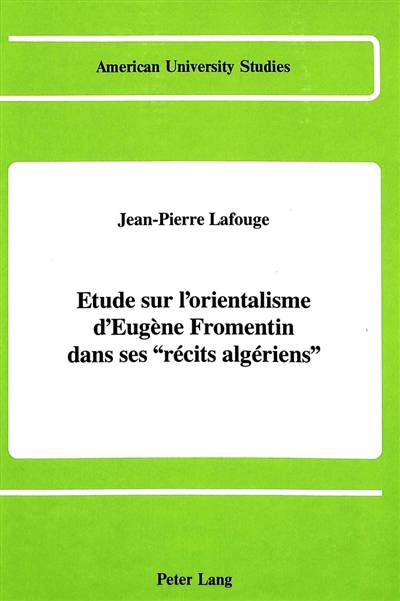 Ce livre analyse les sources et les qualités de l'orientalisme littéraire et idéologique des Récits algériens d'Eugène Fromentin (Un été dans le Sahara, Une année dans le Sahel, 1854-1858). Il compare cet orientalisme avec celui de Victor Hugo, de Gérard de Nerval et de Lamartine, et montre comment Fromentin s'est inspiré des oeuvres du Général Daumas et de celles de Senancour. Se faisant, il veut démontrer que l'orientalisme en littérature comporte bien des degrés et que celui de Fromentin, venu en son temps, y a trouvé une place plus qu'honorable, au point d'être encore pleinement apprécié de nos jours.