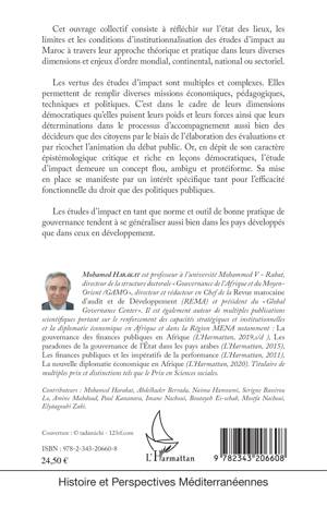 Cet ouvrage collectif consiste à réfléchir sur l'état des lieux, les limites et les conditions d'institutionnalisation des études d'impact au Maroc à travers leur approche théorique et pratique dans leurs diverses dimensions et enjeux d'ordre mondial, continental, national ou sectoriel. Les vertus des études d'impact sont multiples et complexes. Or, en dépit de son caractère épistémologique critique et riche en leçons démocratiques, l'étude d'impact demeure un concept flou, ambigu et protéiforme.