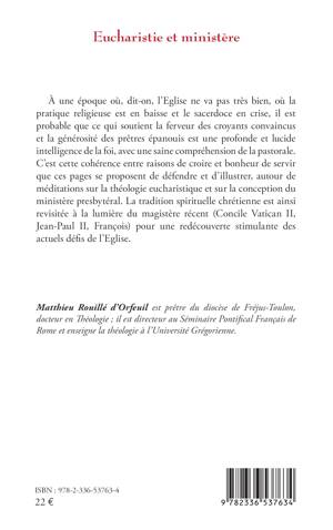 À une époque où, dit-on, l'Eglise ne va pas très bien, où la pratique religieuse est en baisse et le sacerdoce en crise, il est probable que ce qui soutient la ferveur des croyants convaincus et la générosité des prêtres épanouis est une profonde et lucide intelligence de la foi, avec une saine compréhension de la pastorale. C'est cette cohérence entre raisons de croire et bonheur de servir que ces pages se proposent de défendre et d'illustrer, autour de méditations sur la théologie eucharistique et sur la conception du ministère presbytéral. La tradition spirituelle chrétienne est ainsi revisitée à la lumière du magistère récent (Concile Vatican II, Jean-Paul II, François) pour une redécouverte stimulante des actuels défis de l'Eglise.
