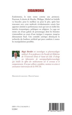 Eudaimonia, le nom sonne comme une promesse. Pourtant, le destin de Marthe, Philippe, Michel ou Isabelle va basculer, pour le meilleur ou pour le pire, après leur rencontre avec cette molécule révolutionnaire censée leur apporter sérénité et performance mais qui sert en réalités des intérêts économiques, politiques ou religieux. La saga sur trente ans d'une galerie de personnages dont les histoires s'entremêlent au cours d'une intrigue à suspense, jusqu'au dénouement final. Une comédie satirique dénonçant la recherche du bonheur artificiel qui peut conduire à toutes les manipulations possibles.