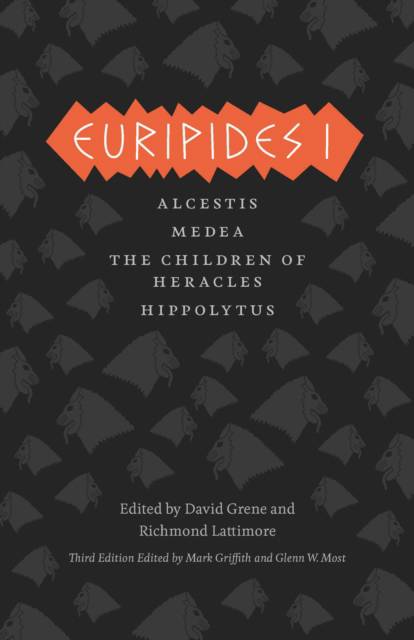 Euripides I contains the plays "Alcestis," translated by Richmond Lattimore; "Medea," translated by Oliver Taplin; "The Children of Heracles," translated by Mark Griffith; and "Hippolytus," translated by David Grene.