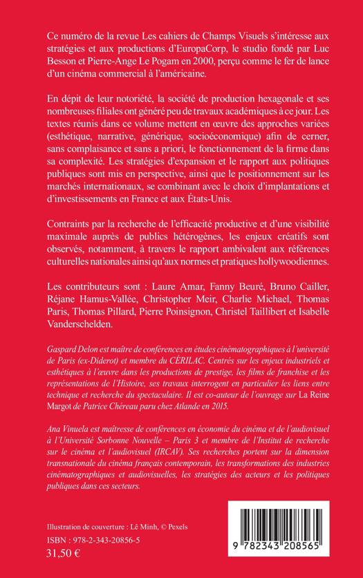 Ce numéro de la revue Les cahiers de Champs Visuels s’intéresse aux stratégies et aux productions d’EuropaCorp, le studio fondé par Luc Besson et Pierre-Ange Le Pogam en 2000, perçu comme le fer de lance d’un cinéma commercial à l’américaine. En dépit de leur notoriété, la société de production hexagonale et ses nombreuses filiales ont généré peu de travaux académiques à ce jour. Les textes réunis dans ce volume mettent en œuvre des approches variées (esthétique, narrative, générique, socioéconomique) afin de cerner, sans complaisance et sans a priori, le fonctionnement de la firme dans sa complexité.