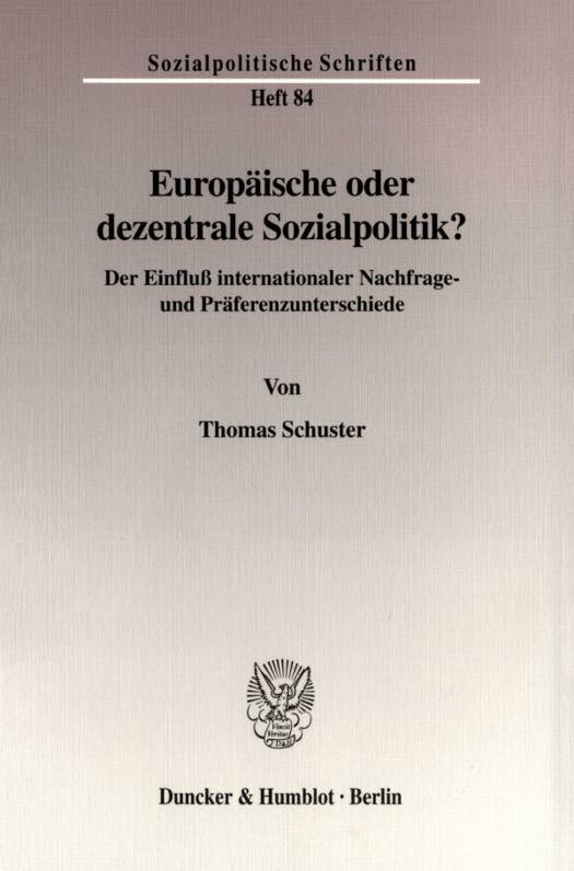 Seit die Europäische Wirtschaftsgemeinschaft im Jahre 1957 gegründet wurde, ist die Sozialpolitik ein Dauerthema. In diesem Zusammenhang muß die wichtige Frage beantwortet werden, welche sozialpolitischen Güter zentral und welche dezentral angeboten werden. Der Autor untersucht, ob und inwieweit es effizient und sinnvoll ist, daß die Europäische Union sozialpolitisch aktiv wird. Er wählt als normativen Ausgangspunkt die ökonomische Theorie des Föderalismus. Für den Bereich der Sozialpolitik gibt sie mit den Präferenzen der Bürger ein wichtiges normatives Kriterium dafür vor, welche institutionelle Ebene ein sozialpolitisches Gut anbieten soll.