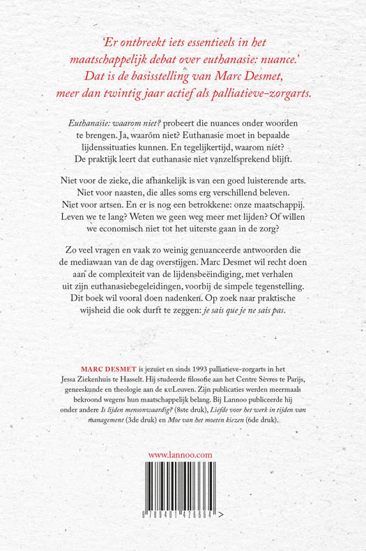 Vanuit zijn twintigjarige praktijk met euthanasiebegeleiding stelt Marc Desmet vast dat euthanasie niet zo evident is als soms in de media wordt voorgesteld.