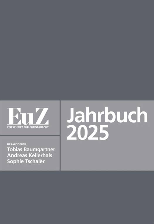 Das vorliegende Jahrbuch umfasst die Leitartikel der EuZ - Zeitschrift für Europarecht aus dem Jahr 2025. Die EuZ berichtet in nunmehr 27. Jahrgängen über die jüngsten Entwicklungen im Recht der EU sowie über die Beziehungen der Schweiz zur EU. Im Rahmen wissenschaftlicher Beiträge analysieren renommierte Experten aktuelle Rechtsfragen in allen wirtschaftsrelevanten Bereichen des EU-Rechts.