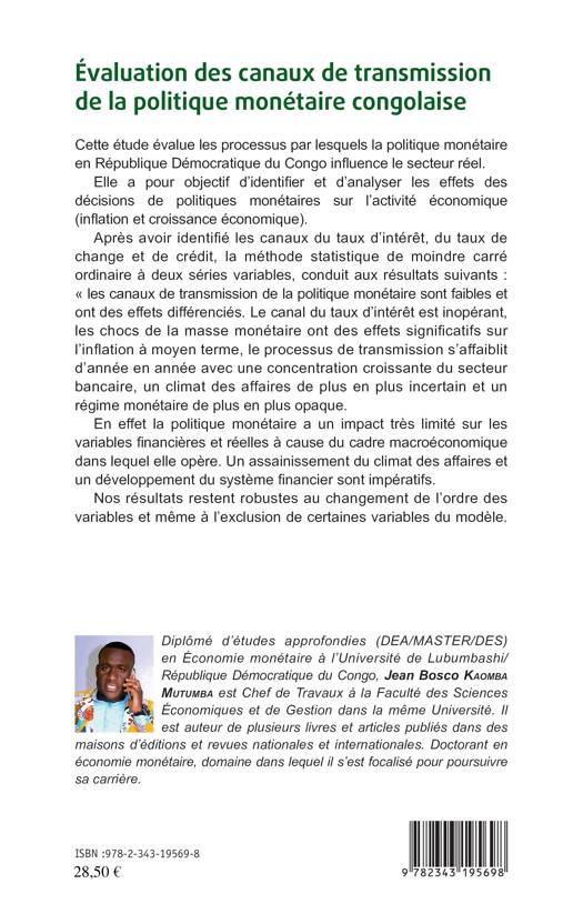 Evaluation des canaux de transmission de la politique monétaire congolaise