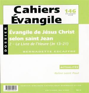 Avec la perspective de la Croix, le temps se dilate et, dans les discours d'adieu, Jésus donne à ses amis les clés de compréhension de son identité et de sa mission. C'est aussi pour eux le moment du choix, celui où se vérifie la « suivance ». Du repas avant l'arrestation au repas au bord du lac après la résurrection, une seule question : « M'aimes-tu ? ». Vivre, mourir, vivre : c'est l'Heure où le Père est glorifié en son Fils, l'Heure où Jésus aime les siens jusqu'à l'extrême, l'Heure de l'annonce des persécutions à venir et de l'envoi du Paraclet.