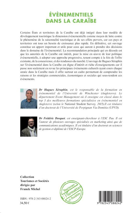 Voici un apport utile pour ceux qui auront à prendre des décisions dans le domaine de l'évènementiel. Les autorités de la Caraïbe ont intérêt, pour la mise en uvre de leur politique évènementielle, à adopter une approche progressive, tenant compte à la fois de l'offre existante, de la concurrence et des tendances du marché. Cet ouvrage passe non seulement en revue les principaux évènements culturels ayant cours chaque année, mais il offre surtout un cadre permettant de comprendre les raisons et les stratégies commerciales, économiques et sociales qui sous-tendent ces évènements.