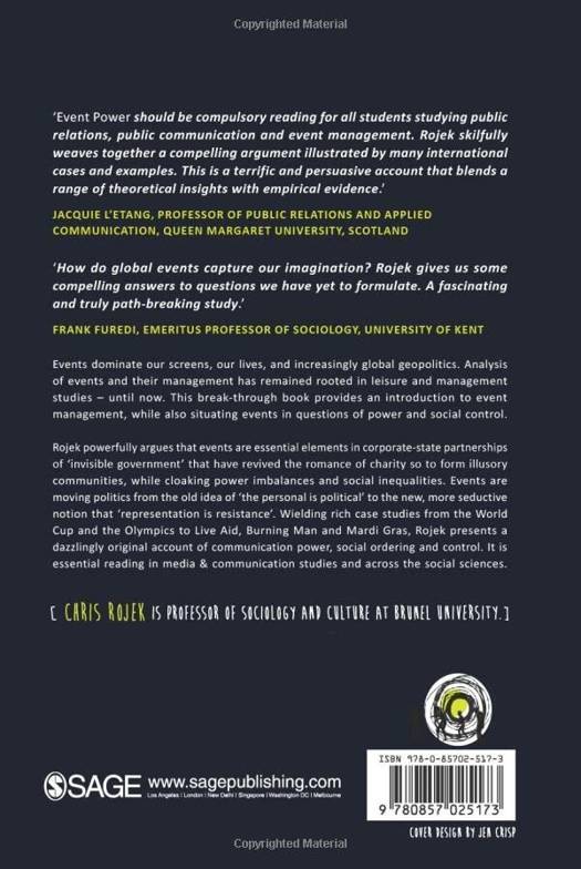 "Rojek's argument is a psychological one, although his message is political: global events build on people's needs to feel empowered and jointly engaged in the pursuit of a higher purpose; they allow a break from daily routines, provide an illusion of intimacy and social membership, and create a sense of self-validation and personal gratification. In short, participation in such events makes us feel good. At the same time, the real effect of global events seems to be the maintenance of global inequality and social injustice, as well as huge profits for the organizations involved in planning, commercializing and securing these happenings. In sketching out this palliative function of global events from the perspective of people's needs on the one hand, and unveiling their puppet masters backstage on the other, Rojek's book presents a compelling account of the role of organized events in modern society."" - Organization Studies Events dominate our screens, our lives, and increasingly global geopolitics. Analysis of events and their management has remained rooted in leisure and management studies - until now. This break-through book provides an introduction to event management, while also situating events in questions of power and social control. Rojek powerfully argues that events are essential elements in corporate-state partnerships of 'invisible government' that have revived the romance of charity as to form illusory communities, while cloaking power imbalances and social inequalities. Events are moving politics from the old idea of 'the personal is political' to the new, more seductive notion that 'representation is resistance'. Wielding rich case studies from the World Cup and the Olympics to Live Aid, Burning Man and Mardi Gras, Rojek presents a dazzlingly original account of communication power, social ordering and control. It is essential reading in media & communication studies and across the social sciences.