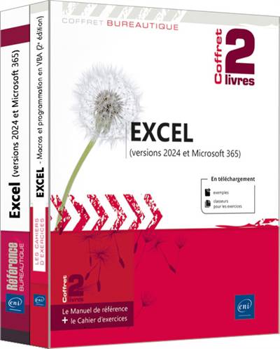 Deux guides pour apprendre les fonctionnalités d'Excel et aller plus loin en créant des macros ainsi que des programmes VBA. Le premier ouvrage présente dans le détail les différentes fonctions du logiciel et le second permet de s'entraîner grâce à des exercices variés et concrets.