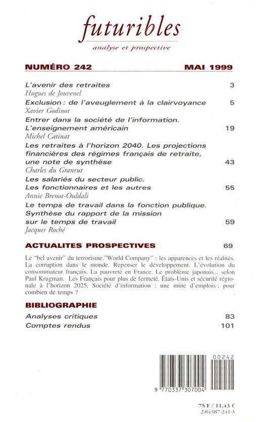 Les retraites à l’horizon 2040. Les projections financières des régimes français de retraite, une note de synthèse