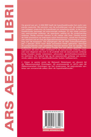 Op grond van art. 3:268 BW heeft de hypotheekhouder het recht van parate executie. Bij verzuim van de schuldenaar met de voldoening van hetgeen waarvoor de hypotheek tot waarborg strekt, is de hypotheekhouder bevoegd tot executoriale verkoop. Er zijn twee vormen van executoriale verkoop: de openbare veiling en de onderhandse verkoop. Beide vormen komen in dit cahier aan bod. Hierbij wordt de hele procedure op beknopte wijze beschreven, vanaf het moment van verzuim tot en met de eigendomsoverdracht, zuivering en verdeling van de koopsom. De wijzigingen die de Wet Executieveilingen per 1 januari 2015 voor deze procedure heeft gebracht, alsmede de jurisprudentie naar aanleiding hiervan komen ook ter sprake. De praktische opzet van dit cahier maakt het niet alleen geschikt voor studenten die zich willen verdiepen in de executoriale verkoop, maar ook voor degenen die zich in de praktijk met de executoriale verkoop bezig houden (zoals notarissen, advocaten, gerechtsdeurwaarders en rechters). De nadruk ligt op de executoriale verkoop van onroerende zaken door de hypotheekhouder buiten faillissement.