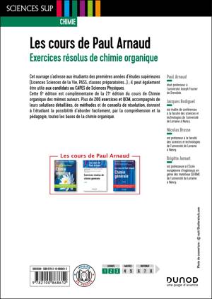 Ce recueil d'exercices résolus couvre les bases de la chimie organique : structure des molécules, isomérie, stéréochimie, mécanismes réactionnels, fonctions simples, principales fonctions multiples et mixtes. Il s’adresse aux étudiants des premières années d’études supérieures (Licences Sciences de la Vie, PASS, classes préparatoires…) ; il peut également être utile aux candidats au CAPES de Sciences Physiques. Il constitue un complément naturel à la 21eédition du Cours de chimie organique des mêmes auteurs, mais il peut être utilisé indépendamment de celui-ci. Plus de 200 exercices et QCM, accompagnés de leurs solutions détaillées, de méthodes et de conseils de résolution, donnent à l’étudiant la possibilité d’aborder facilement, par la compréhension et la pédagogie, toutes les bases de la chimie organique.