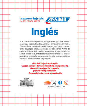 Este cuaderno de ejercicios, muy práctico y lúdico, ha sido concebido especialmente para falsos principiantes en inglés. Ofrece más de 200 ejercicios con una progresión estudiada en forma de juegos, acompañados de sus soluciones. Al final de cada capítulo, también podrás autoevaluar tu nivel del idioma. Se han tenido en cuenta todas las dimensiones de la lengua : gramática, ortografía, vocabulario, sintaxis, pronunciación ¡e incluso la acentuación de las palabras !
