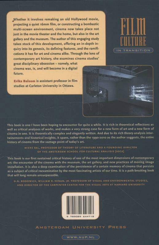 Once at the margins of the art world, film now occupies a prominent place in museums and galleries. Exhibiting Cinema in Contemporary Art explores the emergence of cinema as a primary medium of artistic production, offering an in-depth inquiry into its genesis, its defining features, and its ramifications. Erika Balsom also tackles cinema studies' great disciplinary obsession--namely, what cinema was, is, and will become in a digital future. Rich in theoretical reflections and critical analyses, Exhibiting Cinema in Contemporary Art offers insights into the whole history of cinema from the vantage point of today's art.