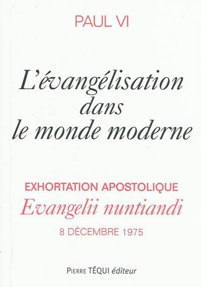 Exhortation apostolique Evangelii nuntiandi de Sa Sainteté le pape Paul VI à l'épiscopat, au clergé et aux fidèles de toute l'Eglise sur l'évangelisation dans le monde moderne