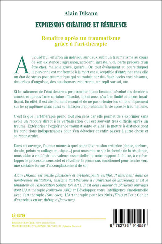 Aujourd’hui, environ un individu sur deux subit un traumatisme au cours de son existence : agression, accident, inceste, viol, perte précoce d’un être cher, maladie grave, guerre… Or, tout événement au cours duquel la personne est confrontée à la mort est susceptible d’entrainer chez elle un état de stress post-traumatique qui se traduit par des flash-backs envahissants, des crises d’angoisse, des cauchemars récurrents, un repli sur soi, etc. Si le traitement de l’état de stress post-traumatique a beaucoup évolué ces dernières années et a prouvé une certaine efficacité, il peut aussi s’avérer limité et encore insuffisant. En effet, il est absolument essentiel de ne pas orienter les soins uniquement sur les symptômes mais aussi sur la façon d’appréhender la vie après le traumatisme. C’est là que l’art-thérapie prend tout son sens car elle permet de s’exprimer sans avoir recours à la verbalisation qui est souvent très difficile après un trauma. Extérioriser l’expérience traumatisante et ainsi la mettre à distance sont les conditions indispensables pour s’en détacher et enfin passer à autre chose et se reconstruire. Dans cet ouvrage, l’auteur montre à quel point l’expression créatrice (danse, écriture, dessin, peinture, collage, musique…) peut nous mettre sur le chemin de la résilience, nous aider à redéfinir nos valeurs essentielles et notre rapport à l’autre, à redévelopper le processus sensoriel et réveiller le processus émotionnel pour tendre vers une certaine forme d’accomplissement de soi.